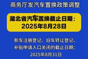 重要通知!湖北省汽车置换补贴将于2025年8月28日截止!