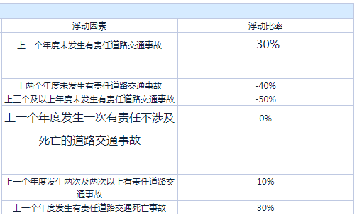 2、优化交强险道路交通事故费率浮动系数:在提高交强险责任限额的基础上,结合各地区交强险综合赔付率水平,在道路交通事故费率调整系数中引入区域浮动因子,浮动比率中的上限保持30%不变,下浮由原来最低的-30%扩大到-50%,提高对未发生赔付消费者的费率优惠幅度。对于轻微交通事故,鼓励当事人采取“互碰自赔”、在线处理等方式进行快速处理,并研究不纳入费率上调浮动因素。详情如下: