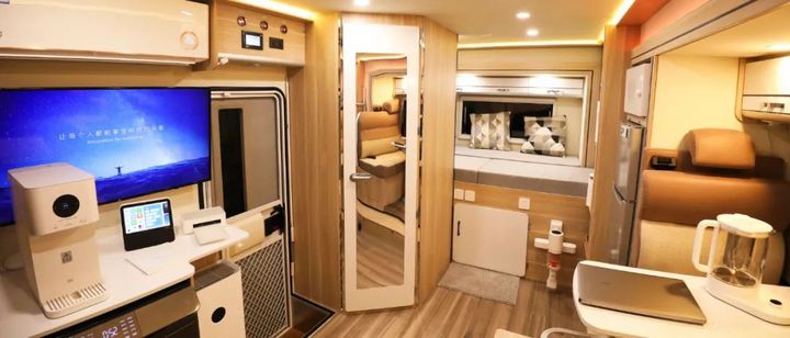 我答应帮他实现这个梦想。目前,房车改造已经接近完工。我们的第一辆车居然是改装的智能房车。