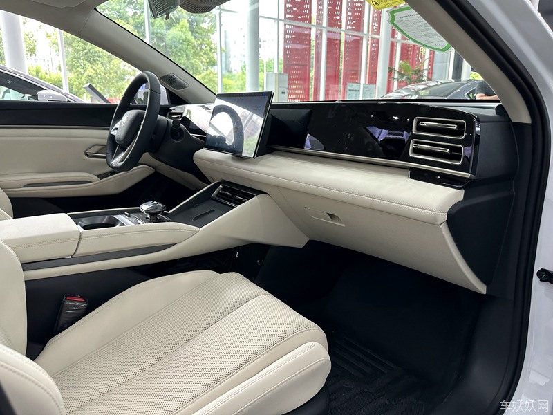 其中控部分采用内嵌式大尺寸液晶仪表搭配 15.6 英寸可旋转中控屏,配置部分提供 DiLink 智能座舱,集 15.6 英寸自适应旋转悬浮 Pad、车载 ETC、手机 NFC 车钥匙、全场景智能语音等配置于一身,100% 兼容手机生态,新车全系标配车载 ETC 和 NFC 车钥匙。