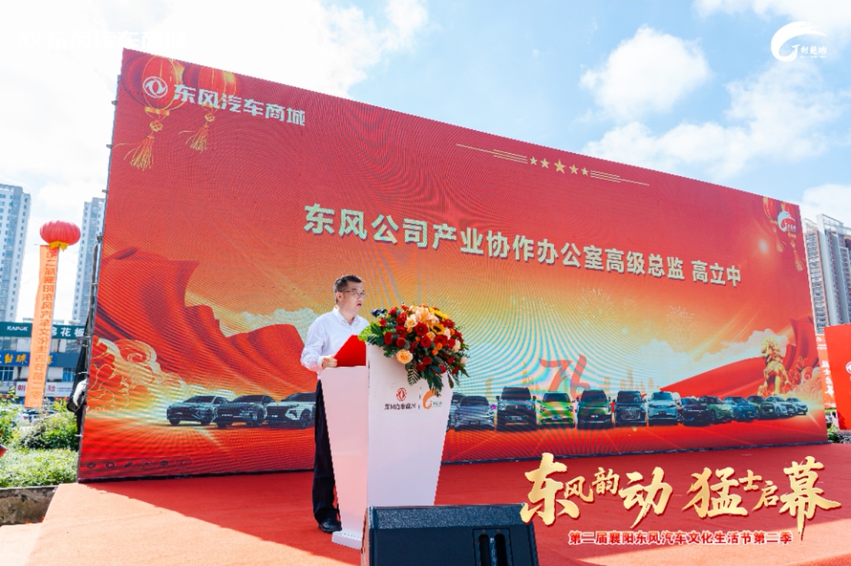 主持人向全场介绍参会领导后,声朗气宏地宣告:“第二届第二季东风汽车文化节,正式开幕!”襄阳东风汽车商城董事长张鑫、东风公司产业协作办公室高级总监高立中等相继登台致辞。各位领导从汽车产业迭代升级的趋势、东风品牌深厚的文化积淀、区域经济与汽车产业协同共进的图景等维度,阐述对汽车文化节赋能产业、猛士品牌锚定高端发展的殷切期许,为产业融合与文化传播凝聚强劲共识。