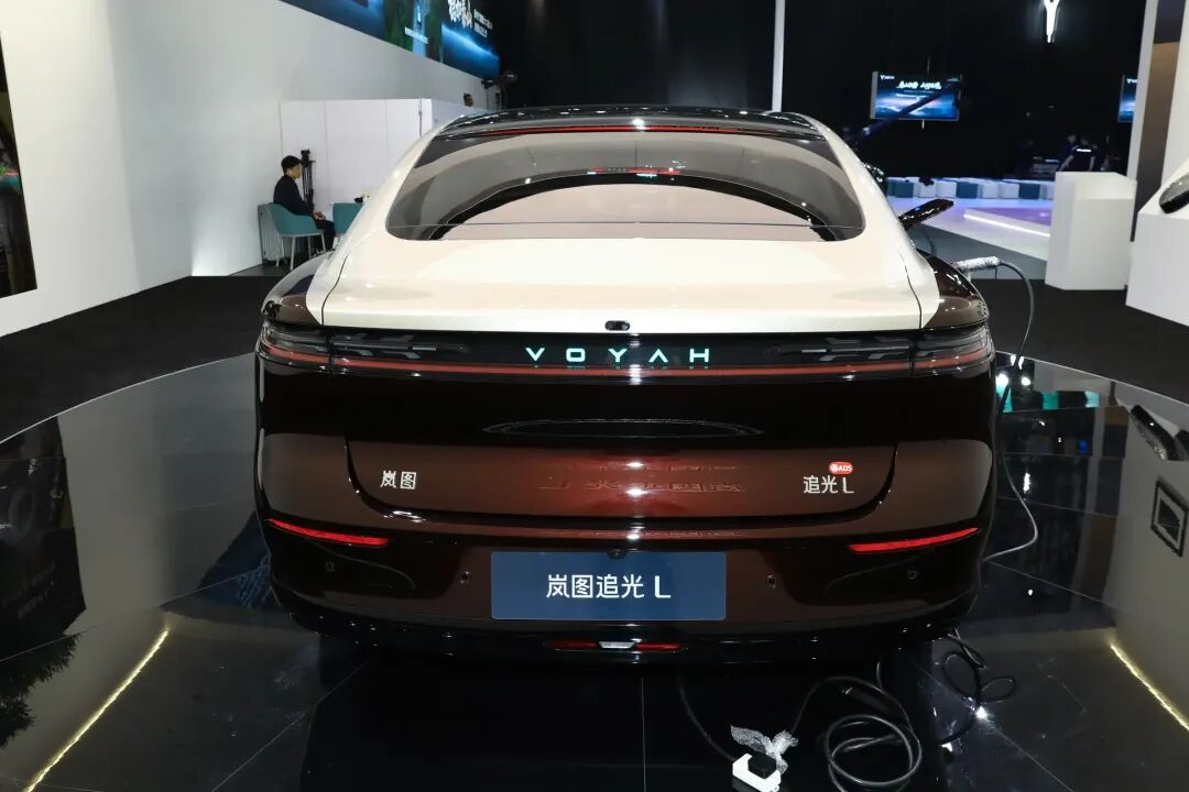 车身侧面,岚图追光L侧面造型较为简洁,整车采用双色设计,营造出优雅的风格。车尾部分,新车造型与在售的岚图追光PHEV基本保持一致,采用贯穿式的尾灯搭配双层光源,同时将岚图的英文标识做成了“智驾小蓝灯”,但并未配备竖向布局的高位刹车灯。