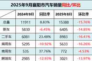 妖数据丨同比小涨 环比小降,2025年9月襄阳市汽车销量报告出炉!