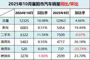 妖数据丨同比/环比双涨!2025年10月襄阳市汽车销量报告来了!