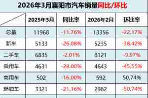 妖数据丨车市降温 2026年3月襄阳市汽车销量创3年新低
